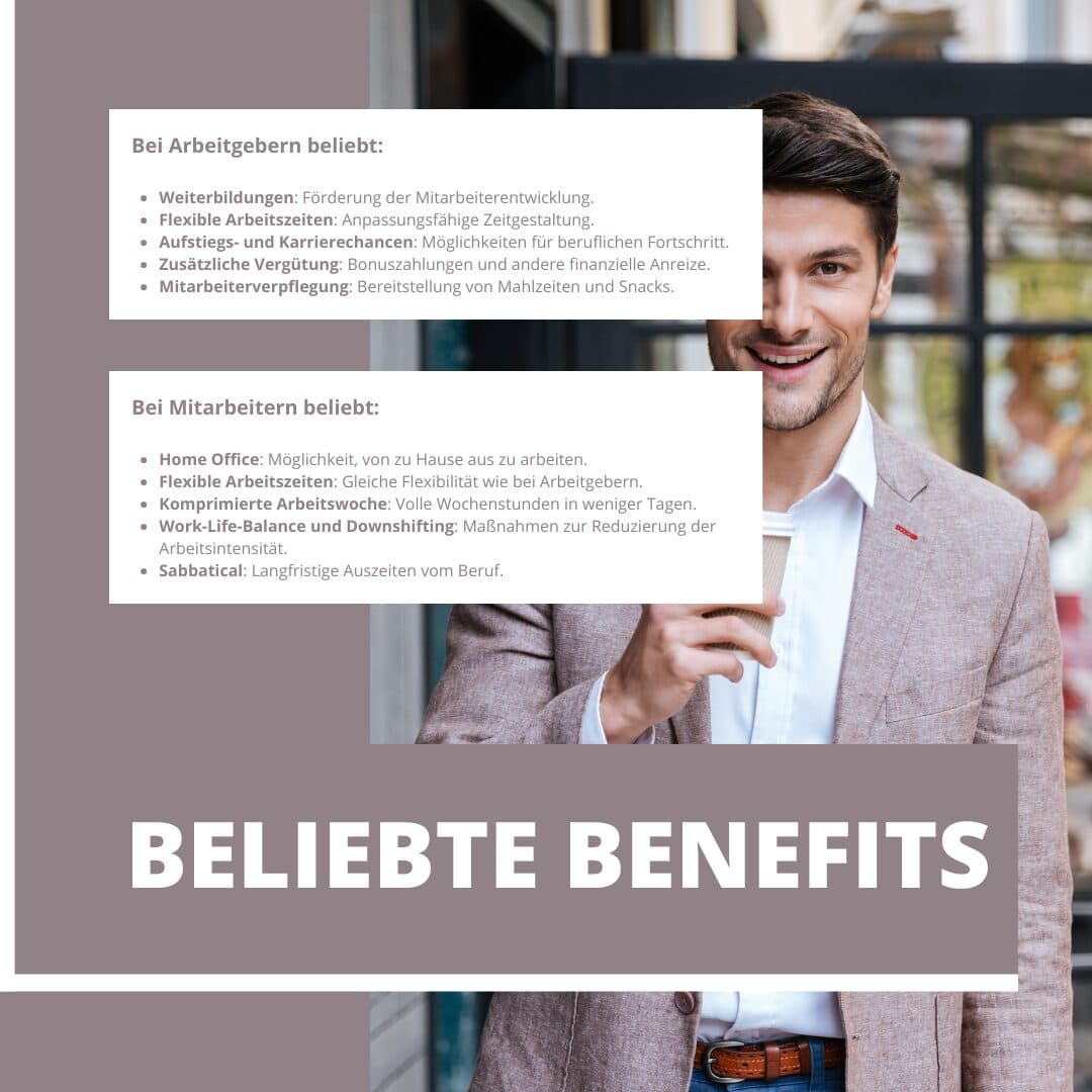 Mit beruflichen Zusatzleistungen – besser bekannt als Benefits – lässt sich einerseits die Beliebtheit von Arbeitgebern erhöhen. Auf der anderen Seite sind sie eine gute Möglichkeit, um die Zufriedenheit und Motivation der Angestellten zu fördern. Wie das am besten funktioniert und welche Benefits für Mitarbeiter besonders gut ankommen, zeigen wir im folgenden Artikel auf.