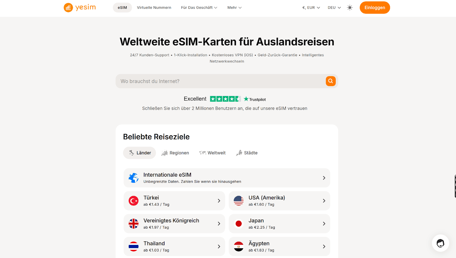 - Netzabdeckung: Stellen Sie sicher, dass der Anbieter in Ihrem Reiseland eine gute Netzabdeckung durch einen zuverlässigen lokalen Partner bietet.