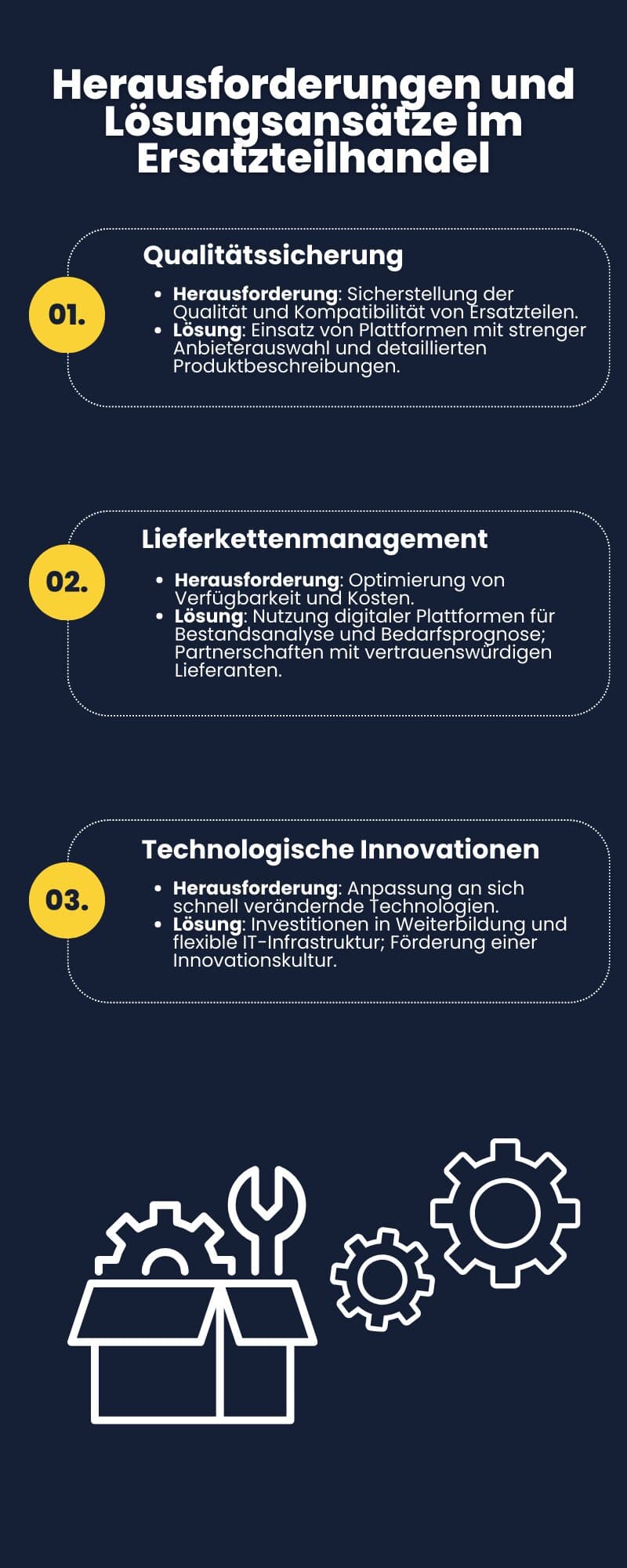 In der sich ständig weiterentwickelnden Landschaft des Ersatzteilhandels stellt die Anpassung an neue Technologien eine wesentliche Herausforderung dar. Unternehmen müssen nicht nur aktuelle technologische Trends verstehen und integrieren, sondern auch ihre Teams kontinuierlich schulen, um mit den Veränderungen Schritt zu halten.