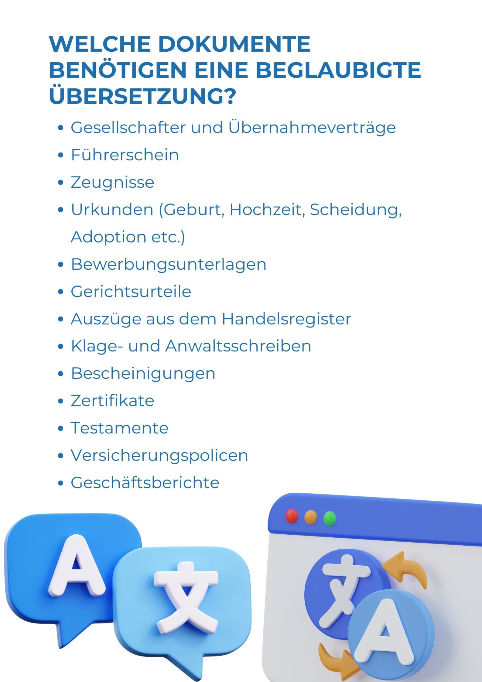 Für welche Dokumente benötigt man eine beglaubigte Übersetzung?