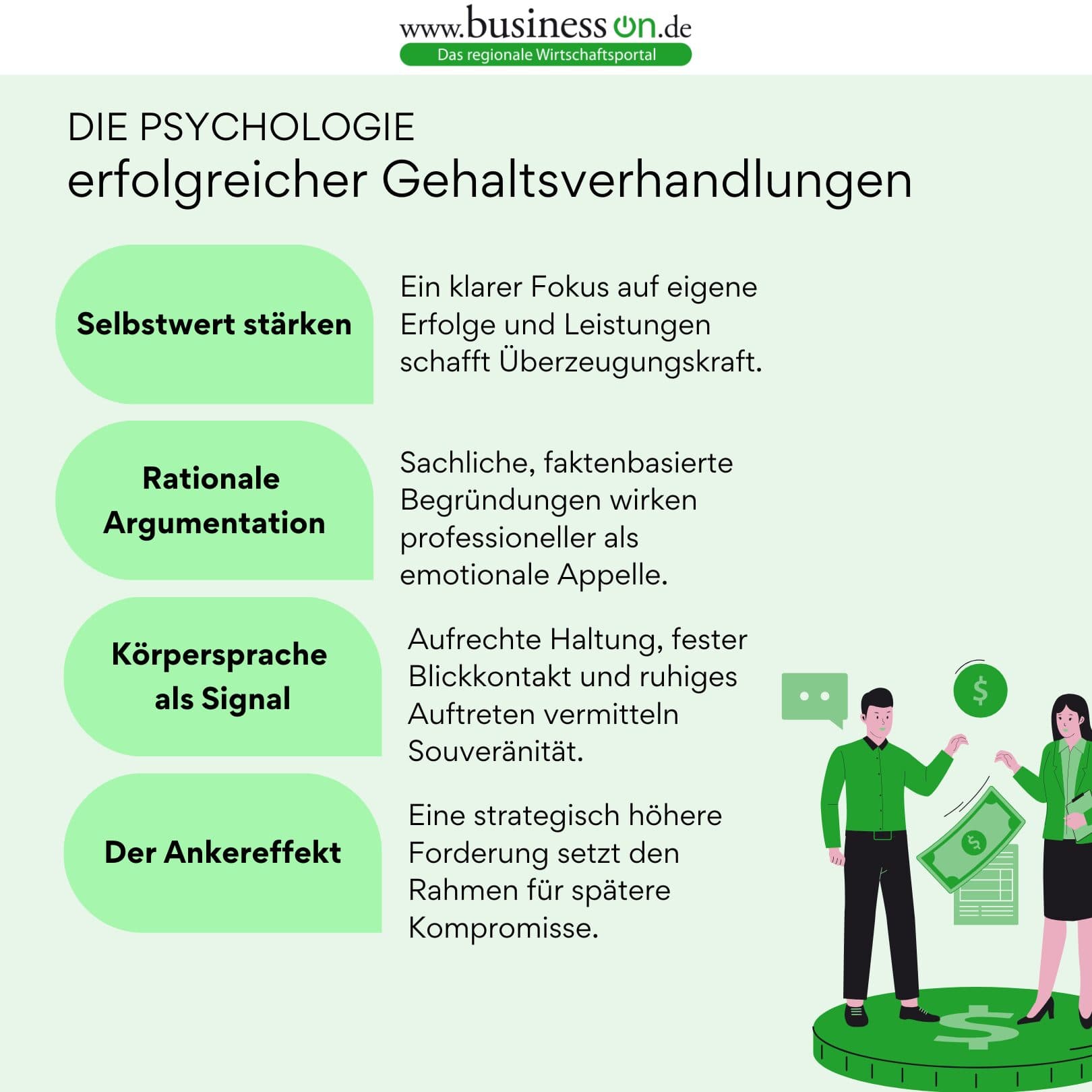 Selbstbewusstsein ist der Schlüssel zu einer erfolgreichen Gehaltsverhandlung. Bereiten Sie sich gut vor und treten Sie sicher auf. Vermeiden Sie unsichere Aussagen wie „Vielleicht könnten wir über eine Erhöhung sprechen“ und formulieren Sie stattdessen klare Forderungen.