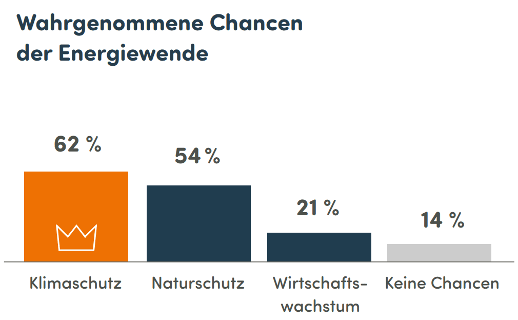 Eine aktuelle Studie zur Energiewende 2024 zeigt, dass 62 % der Befragten den Klimaschutz als größte Chance der Energiewende sehen, während nur 14 % keine Chancen erkennen.