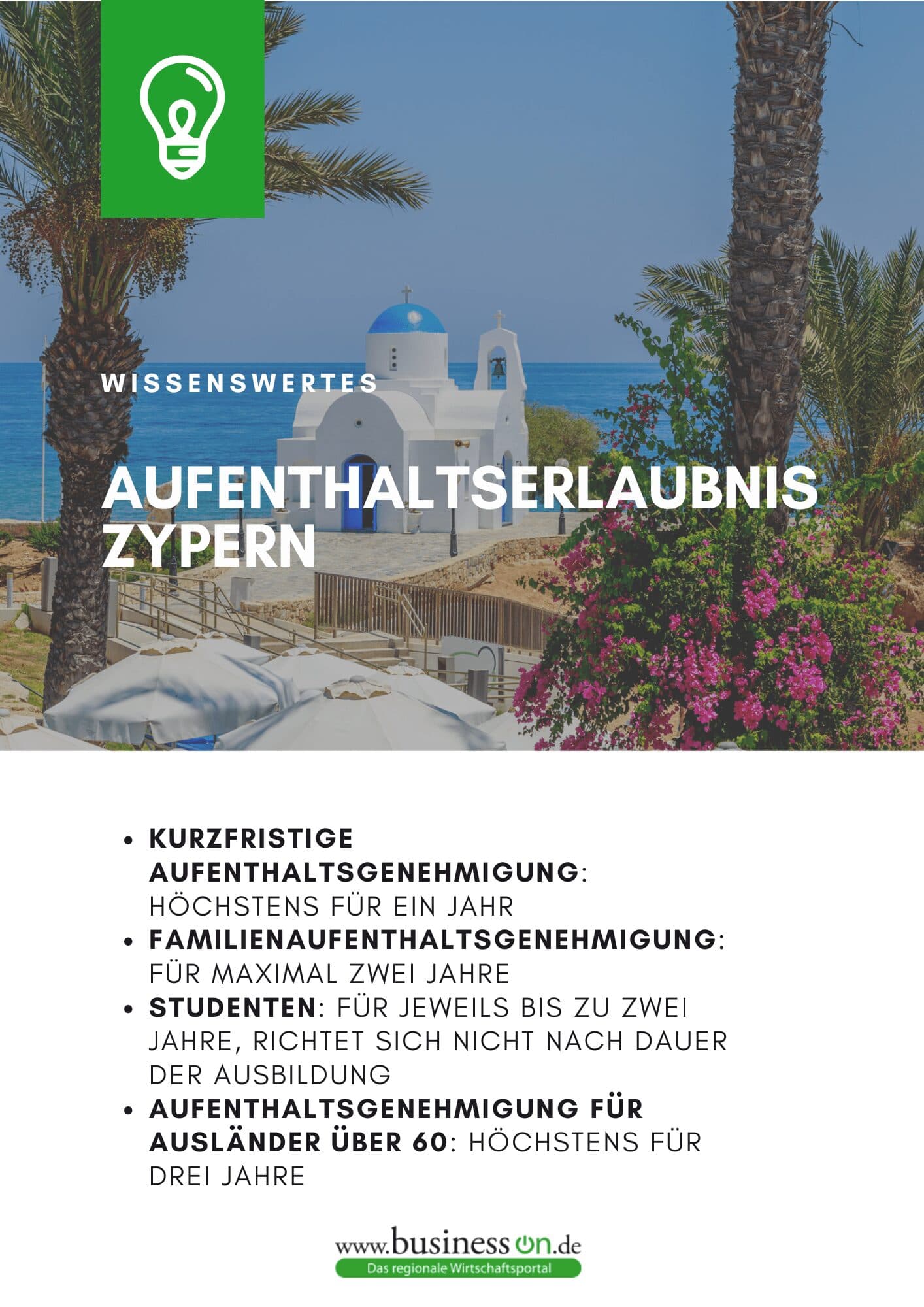 - als Besucher: Als Europäische/r Staatsbürger/in haben Sie die Möglichkeit, 30 Tage ohne Visum in Nordzypern zu bleiben und Ihre Aufenthaltsdauer durch einfaches Verlassen und Wiedereinreisen zu verlängern.