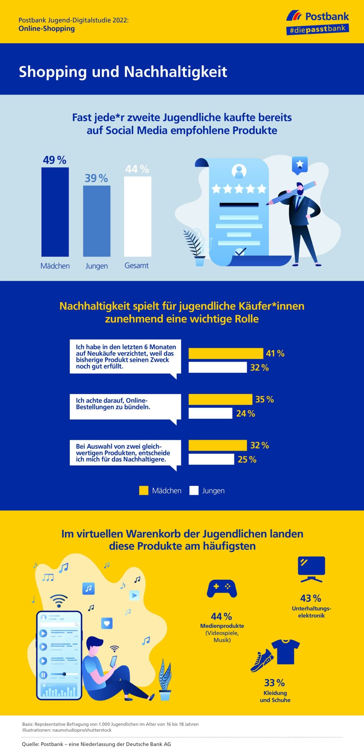 Postbank Jugenddigitalstudie 2022 Infografik: Shopping und Nachhaltigkeit