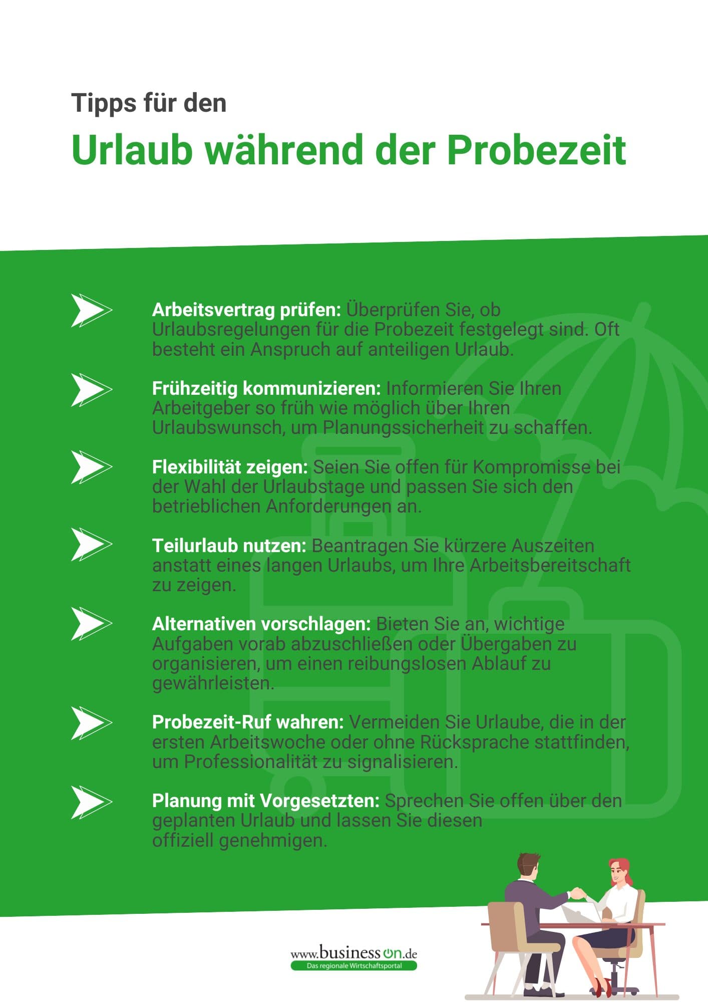 Jedes Unternehmen hat eigene Vorgaben und Abläufe in Bezug auf Urlaub, insbesondere während der Probezeit. Diese Regeln sollten Arbeitnehmer genau kennen und respektieren. Dazu gehört, sich über betriebliche Urlaubsrichtlinien, mögliche Sperrzeiten oder den Einsatz von Urlaubsvertretungen zu informieren.