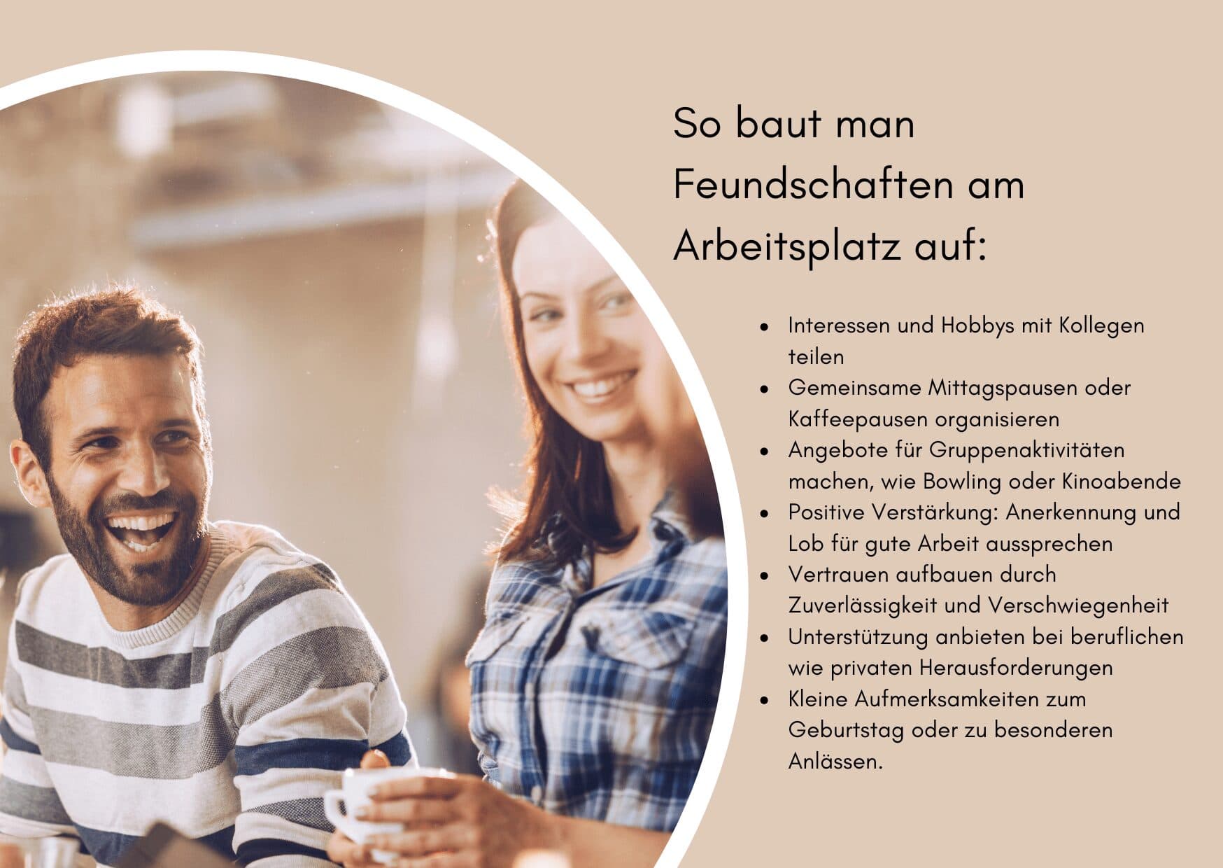 - Professionalität bewahren: Auch wenn aus Kollegen Freunde werden, ist es wichtig, bei der Arbeit eine professionelle Haltung und Sprache zu bewahren.